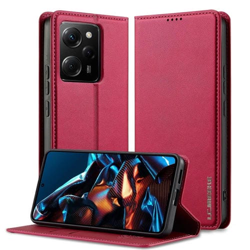 Funda de Teléfono de Pu con Textura Fina Esmerilada para Redmi Note 12 5G Lc.Imeeke L1 Series (Roja)