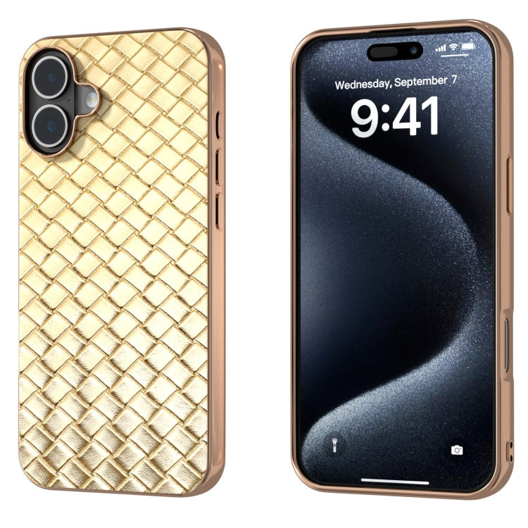 Funda de Teléfono Pu Textura Tejida Marco Galvanizado iPhone 16 (Dorado)