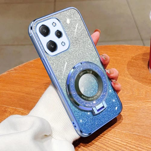 Funda de Teléfono de TPU con Soporte Redondo y Purpurina Degradada Chapada para Redmi 12 4G (Azul Sierra)