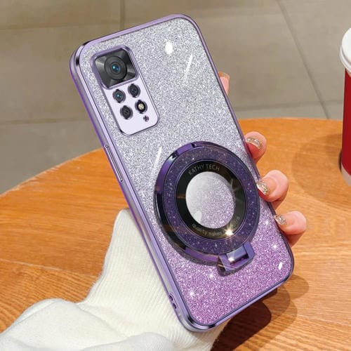 Funda de Teléfono de TPU con Soporte Redondo y Purpurina Degradada para Redmi Note 11 Pro 4G/5G (Morado)