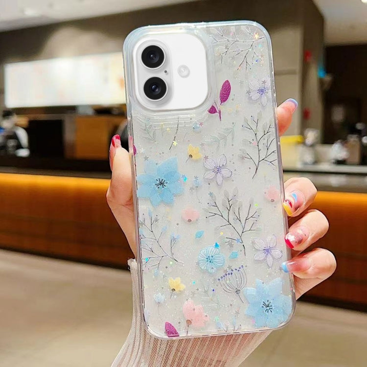 Funda de Teléfono TPU Epoxi iPhone 16 Diseño Floral Pequeño (Azul)