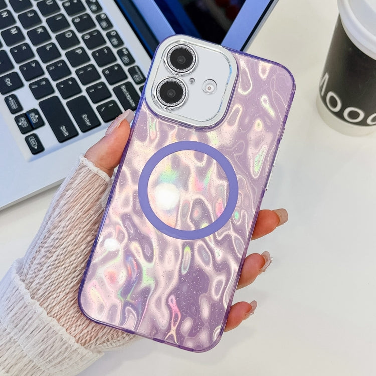 Funda de Teléfono TPU Magsafe para iPhone 16 con Textura Enchapada y Película de Lente Brillante (Arrugas Moradas)