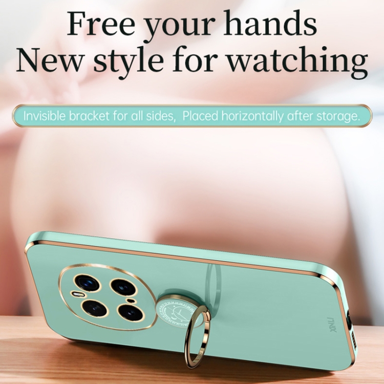 Funda TPU a Prueba de Golpes con Borde Dorado y Revestimiento 6D para Honor Magic7 Pro Xinli con Soporte para Anillo (Blanco)