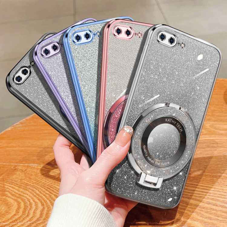 Funda TPU con Soporte Redondo y Purpurina Degradada para iPhone 7 Plus/8 Plus (Negra)