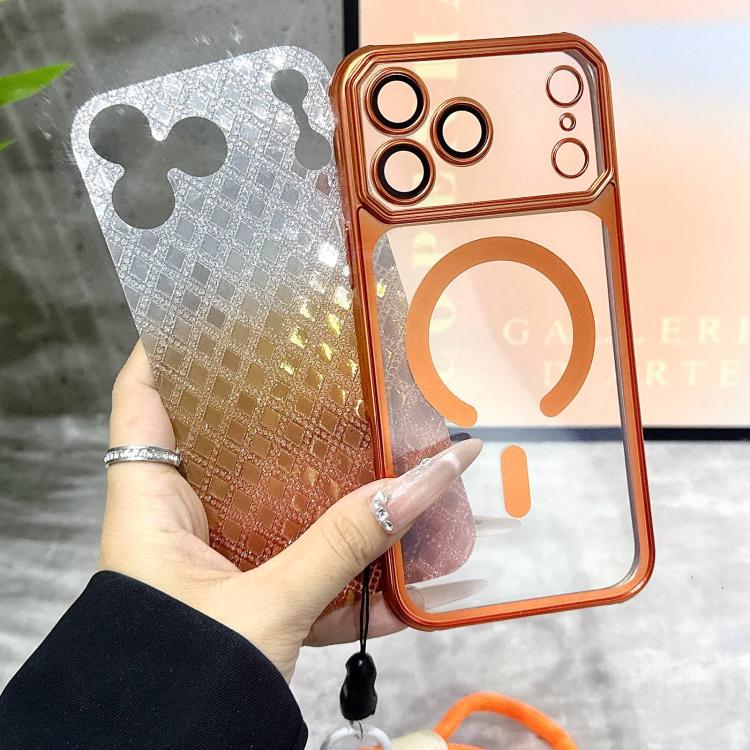 Funda de TPU MagSafe con ventana grande, diseño de rombos degradados, mate, galvanizada y con correa de mano para iPhone 17 Pro Max (negra)