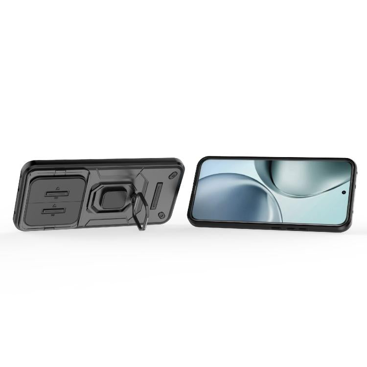 Funda Deslizante de TPU + PC a Prueba de Golpes con Soporte para Realme 14 Pro+ 5G (Negro)