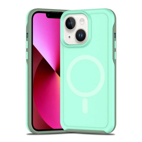 Funda híbrida TPU y PC para iPhone 13 con Protección Magsafe a prueba de golpes (Verde Menta y Verde Grisáceo)