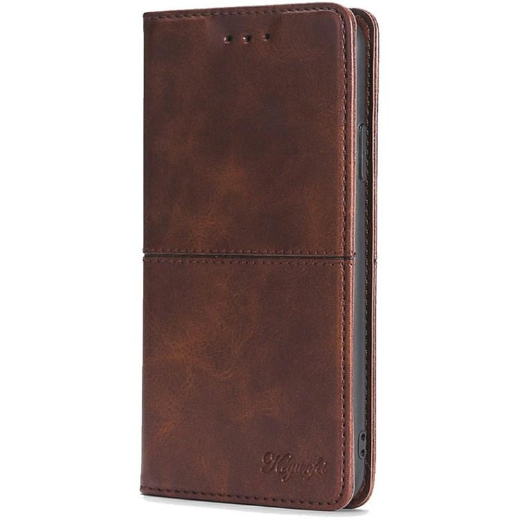 Funda magnética de piel sintética con textura de vaca para iPhone 17 Pro (marrón oscuro)