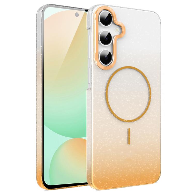 Funda MagSafe a prueba de golpes para Samsung Galaxy S24 FE 5G con purpurina dorada y degradado (dorada)