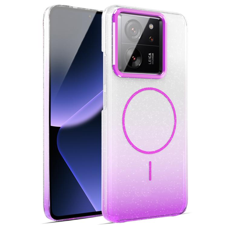 Funda MagSafe a prueba de golpes para Xiaomi 13T/13T Pro con purpurina dorada y degradado (morado)