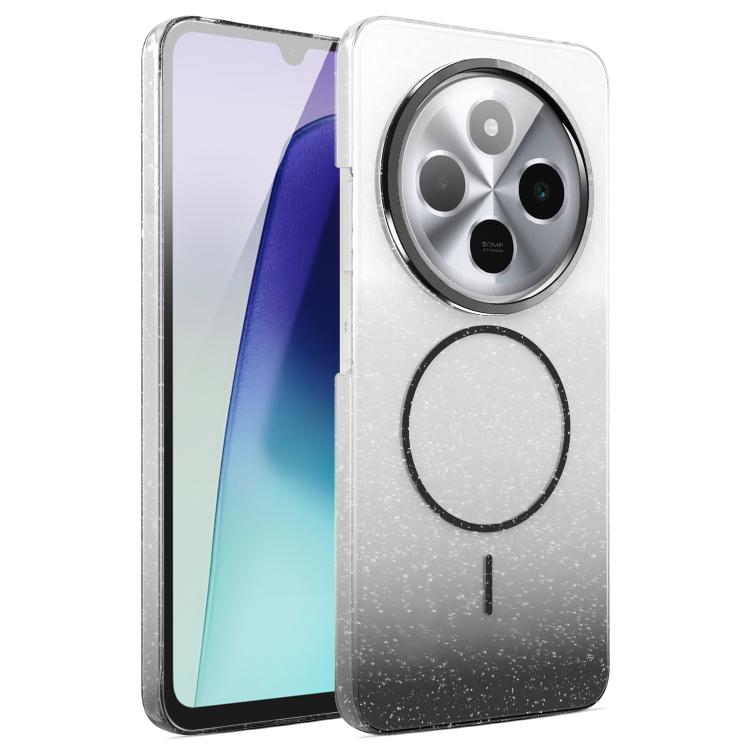 Funda MagSafe a prueba de golpes para Xiaomi Redmi 14C 4G con purpurina dorada y degradado (negro)