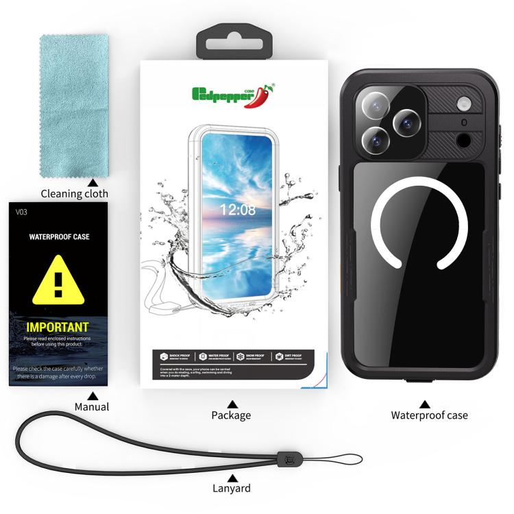Funda MagSafe RedPepper IP68 resistente al agua y con triple protección para iPhone 17 Pro Max (Negra)
