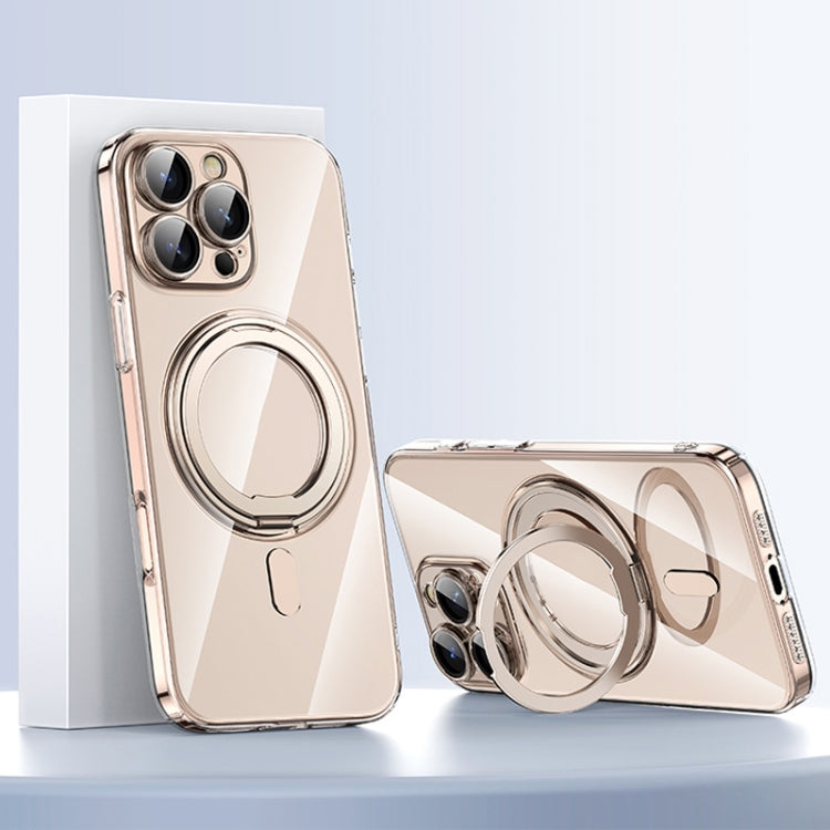 Funda para iPhone 16 Pro Max Soporte de Anillo PC Chapado 360 Magsafe (Dorado Transparente)