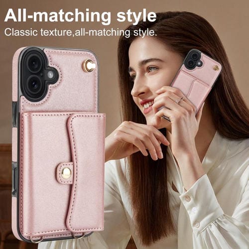 Funda para iPhone 17 con ranura para tarjeta RFID y cordón largo (oro rosa)