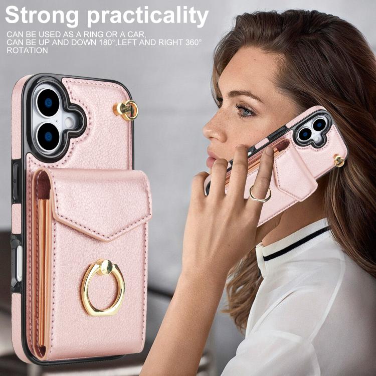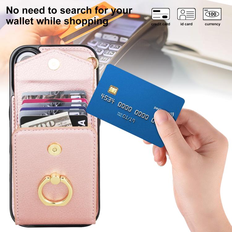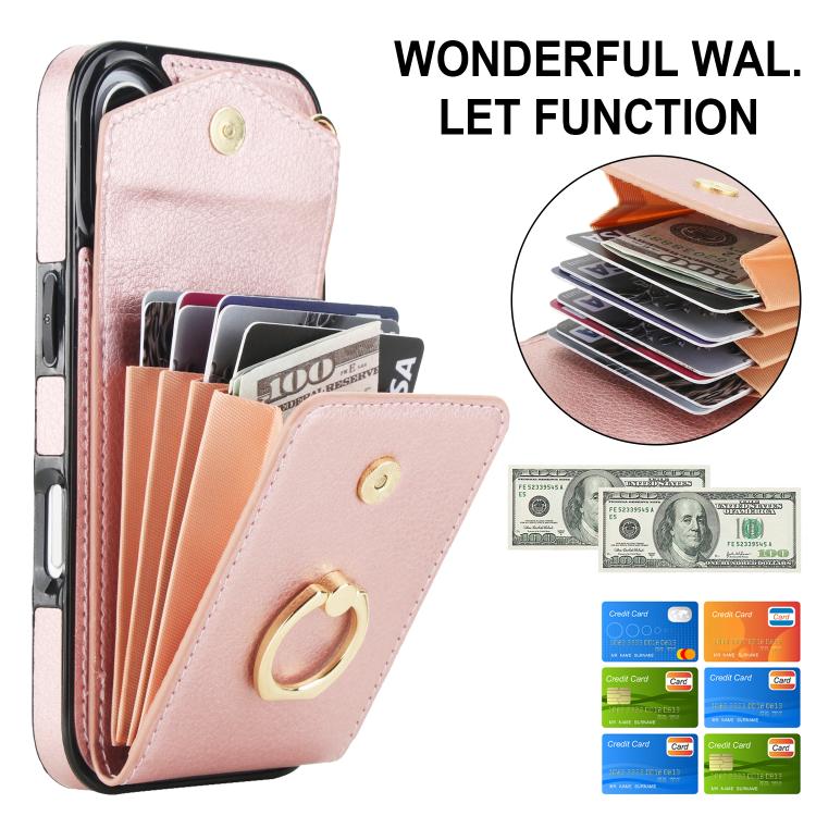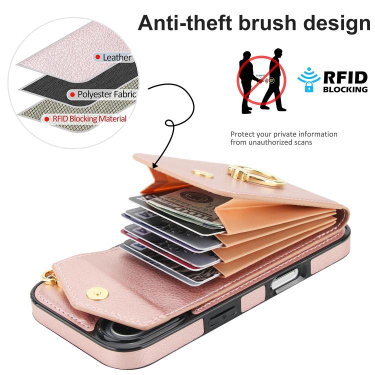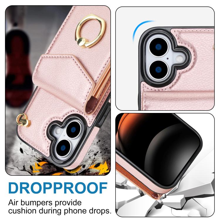 Funda para iPhone 17 con ranura para tarjeta RFID y soporte de anillo (oro rosa)