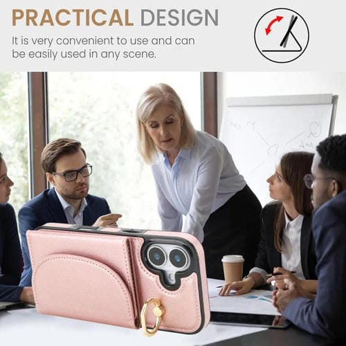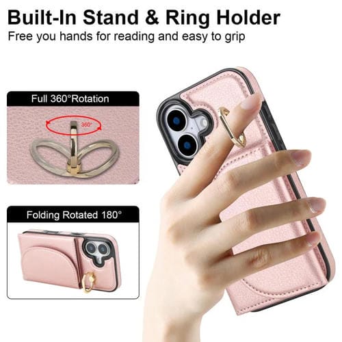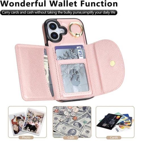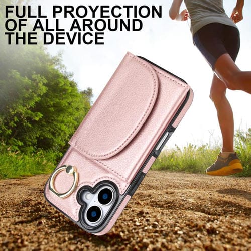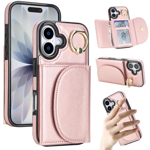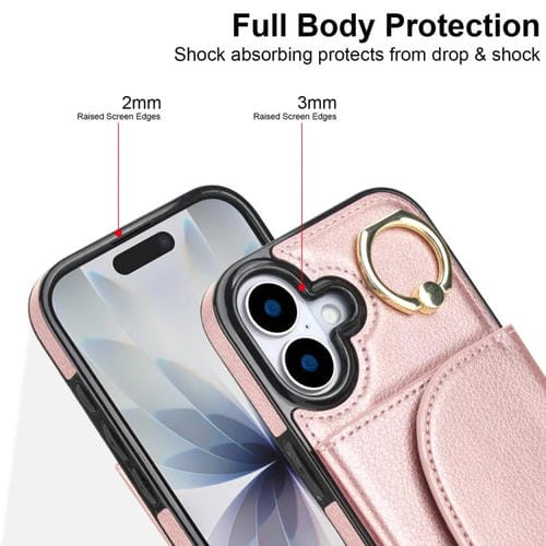 Funda para iPhone 17 con tarjetero y anillo, tacto suave (oro rosa)