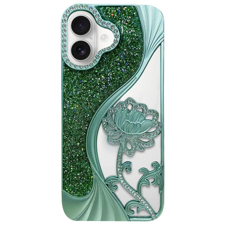 Funda para iPhone 17 de TPU electrochapado con loto, calada, con diamantes de imitación y purpurina (verde)