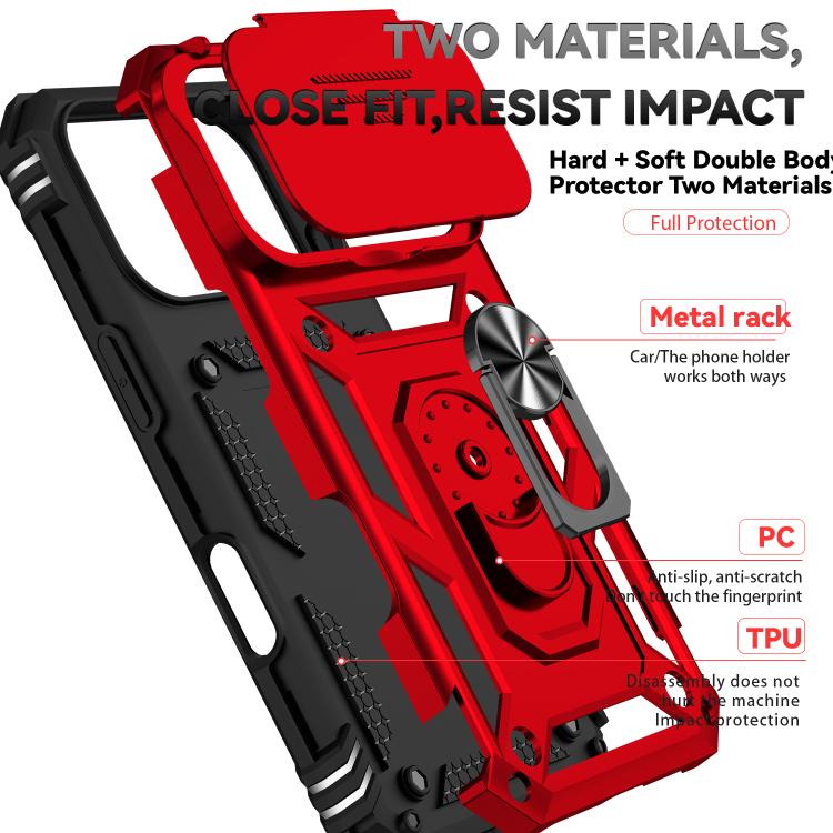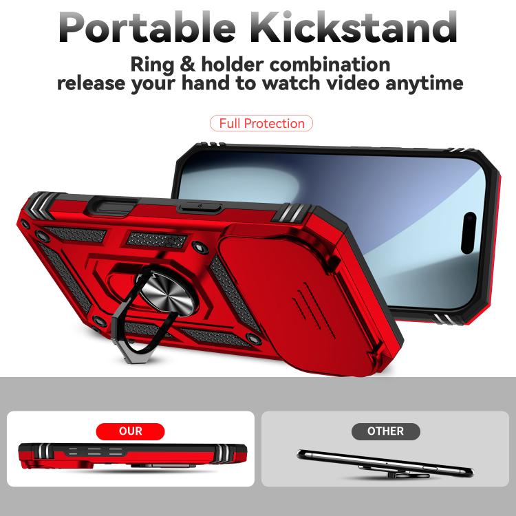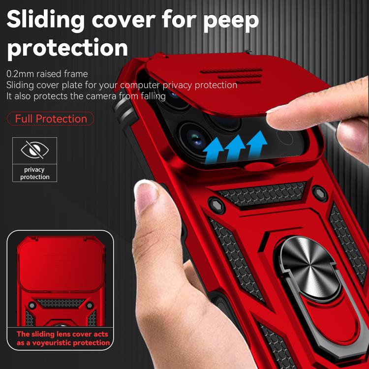 Funda para iPhone 17 Pro con soporte deslizante tipo cámara (roja)