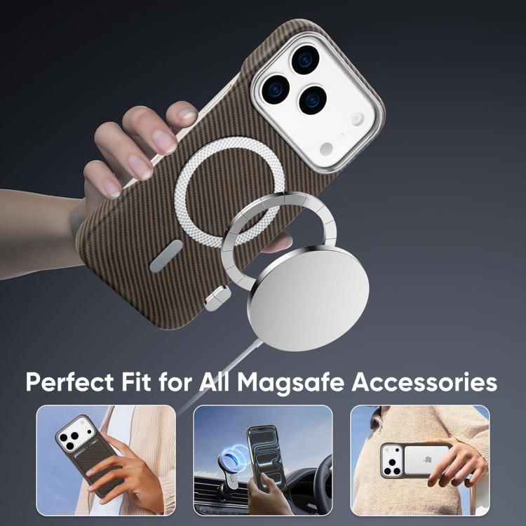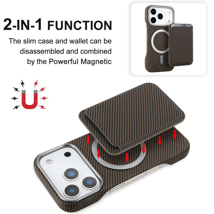 Funda para iPhone 17 Pro con tarjetero magnético MagSafe de fibra de carbono (marrón)