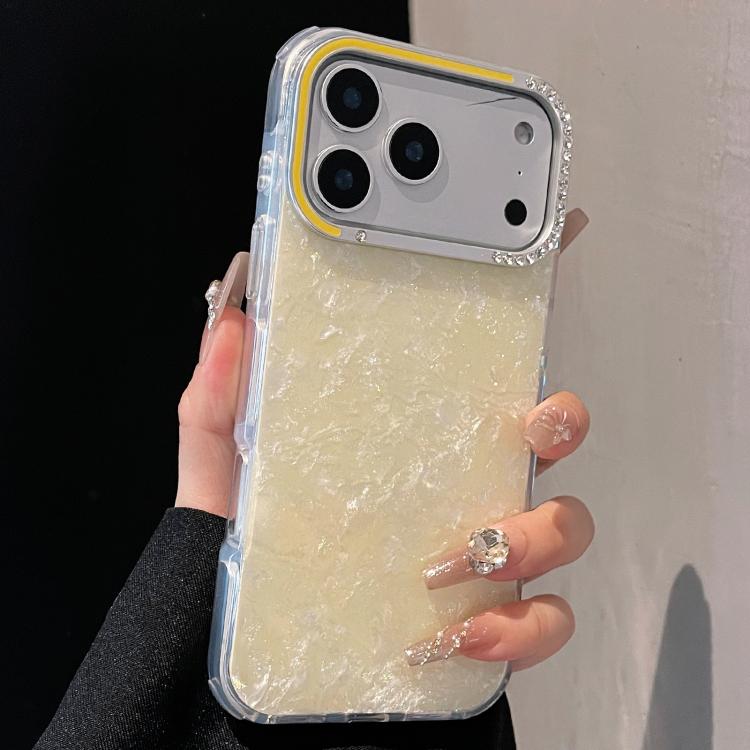 Funda para iPhone 17 Pro Max con diseño dorado y colorido, TPU+IMD estampado (amarilla)