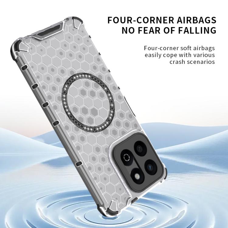 Funda para Honor Play 60 Plus 5G a Prueba de Golpes con Anillo Magnético y Diseño de Panal (Negro)