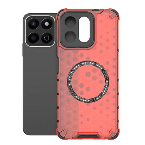 Funda para Honor Play 60 Plus 5G a Prueba de Golpes con Anillo Magnético y Diseño de Panal (Rojo)