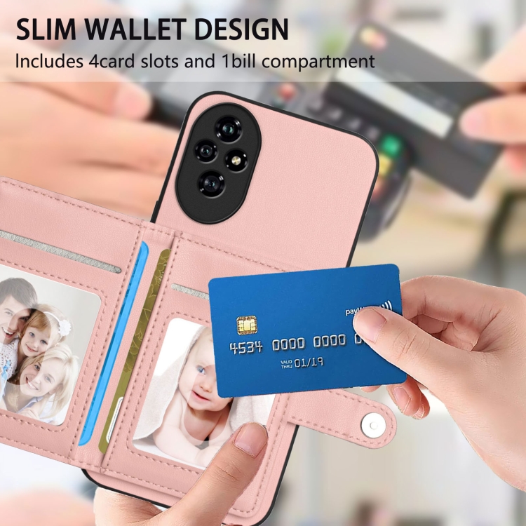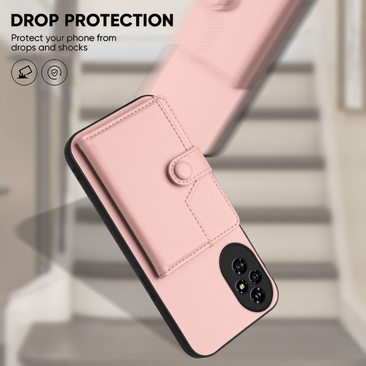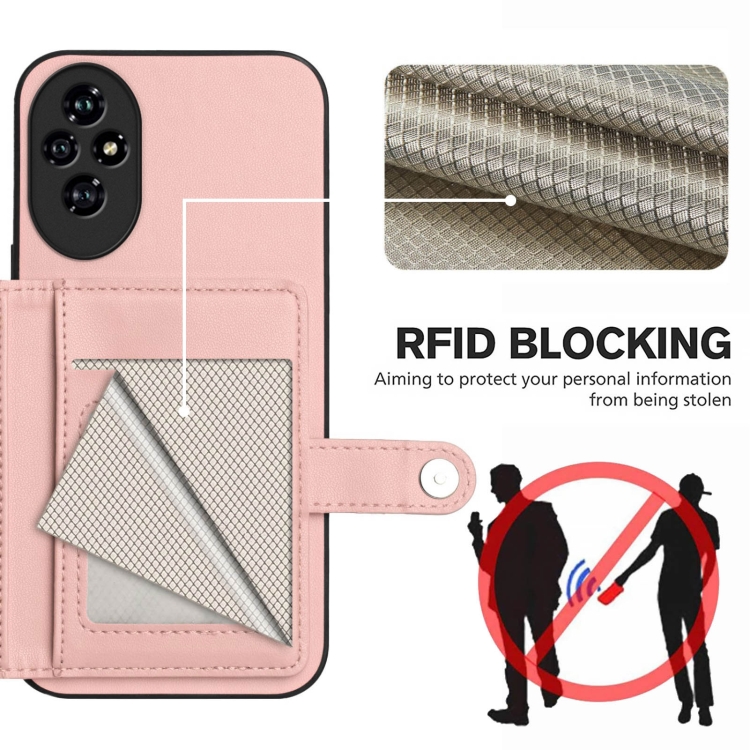 Funda para Teléfono Antirrobo con RFID y Tarjetero con Botón para Honor 200 (Rosa)