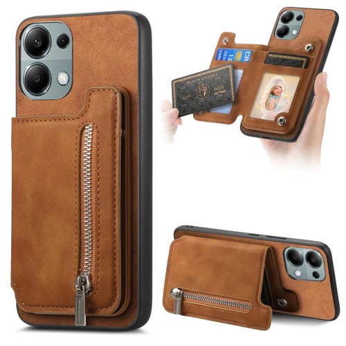 Funda para Teléfono con Cremallera Magsafe Retro para Redmi Note 13 4G (Marrón)