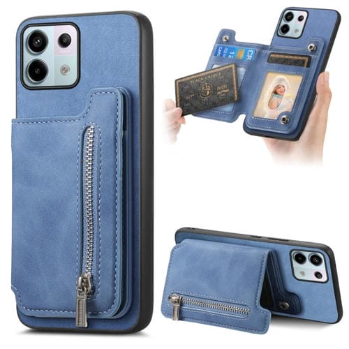 Funda para Teléfono con Cremallera Magsafe Retro para Redmi Note 13 Pro 5G/Poco X6 5G (Azul)