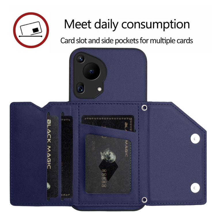 Funda para Teléfono Huawei Pura 70 Ultra Skin Feel con 4 Ranuras y Correa (Azul)