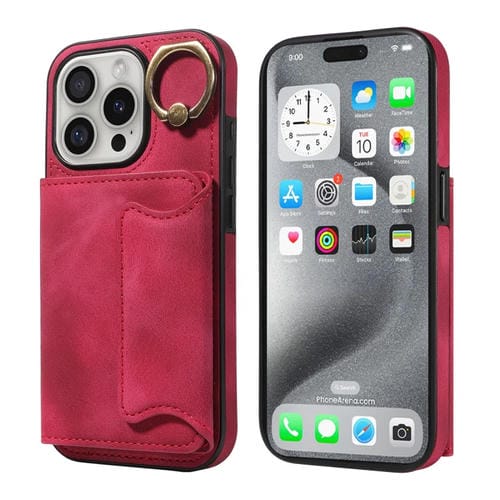 Funda para Teléfono iPhone 16 Pro Hebilla Anilla Diseño Cartera Tacto Piel (Rojo)