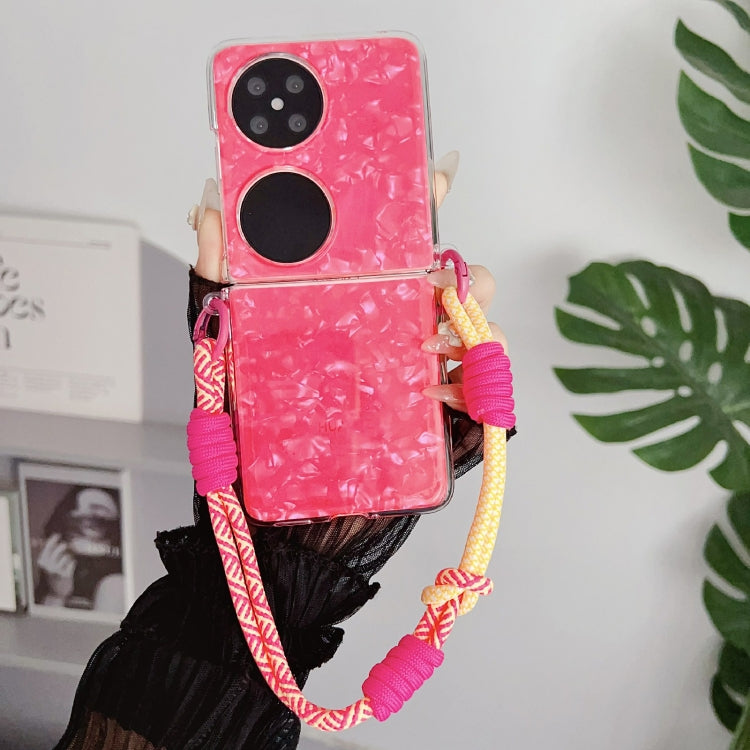Funda para Teléfono Huawei Pocket 2 con Hebilla Lateral y Textura Nacarada (Roja) con Pulsera Arcoíris