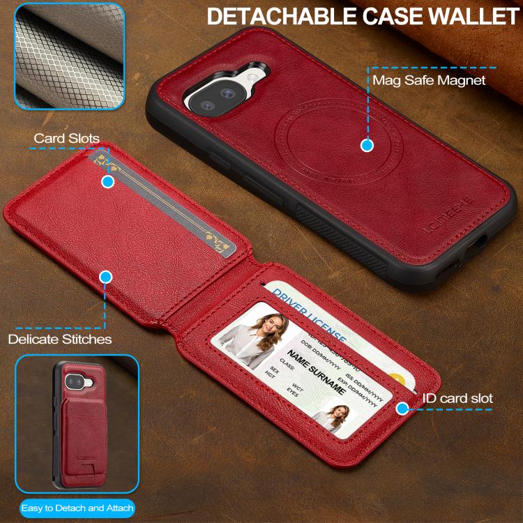 Funda para teléfono con ranura para tarjeta RFID desmontable y Magsafe para Google Pixel 9a LC.IMEEKE L3 Series (roja)
