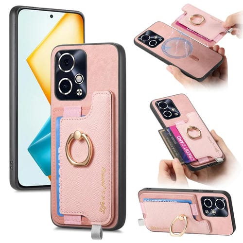 Funda para Teléfono Honor 90 GT 5G con Tarjetero y Anillo de Cuero Retro Magsafe (Rosa)