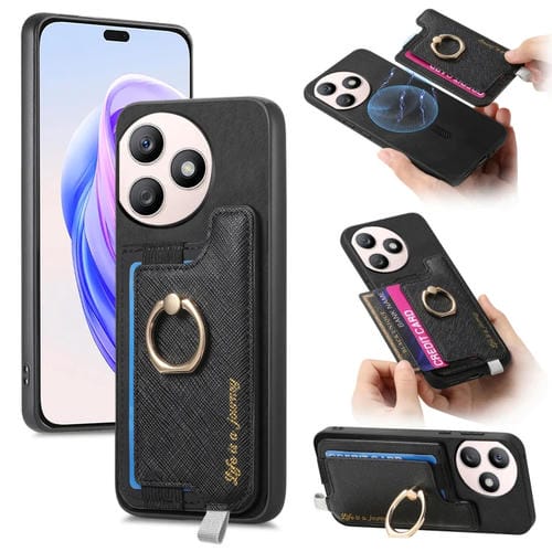 Funda para Teléfono Honor X50I+ con Tarjetero y Anillo de Cuero Diseño Retro Magsafe (Negro)