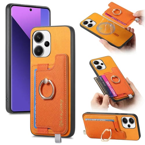 Funda para Teléfono con TaRJetero y Anillo de Cuero con Diseño Retro Magsafe Cross para Redmi Note 13 Pro+ (Amarillo)