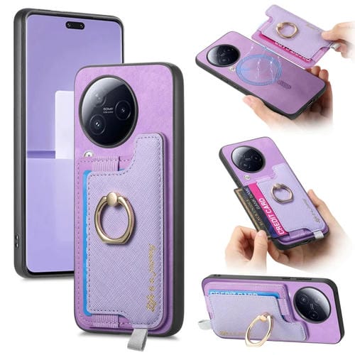 Funda para Teléfono con TaRJetero y Anillo de Cuero con Diseño Retro Magsafe Cross para Xiaomi Civi 3 5G (Morado)