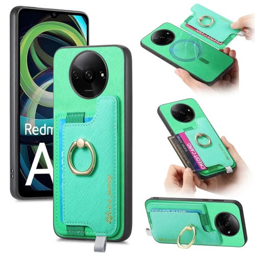 Funda para Teléfono con TaRJetero y Anillo de Cuero con Diseño Retro Magsafe Cross para Xiaomi Redmi A3 (Verde)