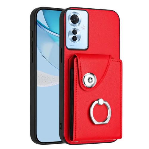 Funda para Teléfono con TaRJetero y Anillo de Piel Sintética para Oppo F25 Pro 5G (Rojo)