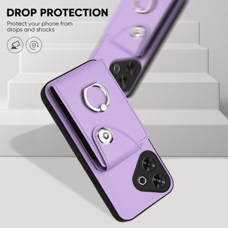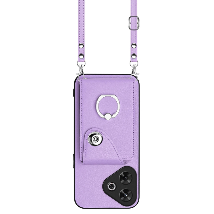 Funda para Teléfono con TaRJetero y Anillo para Redmi Note 13R con Cordón Largo (Morado)