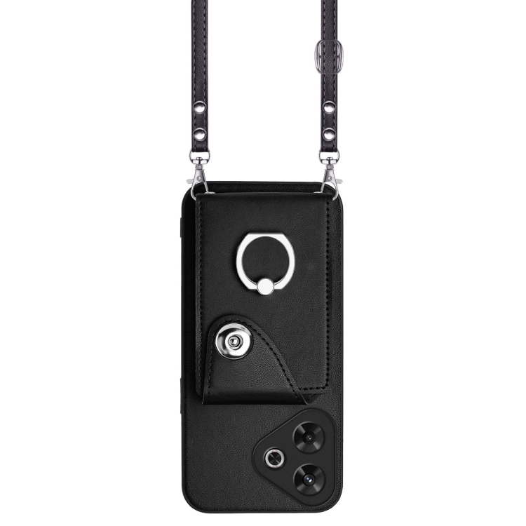 Funda para Teléfono con TaRJetero y Anillo para Redmi Note 13R con Cordón Largo (Negro)
