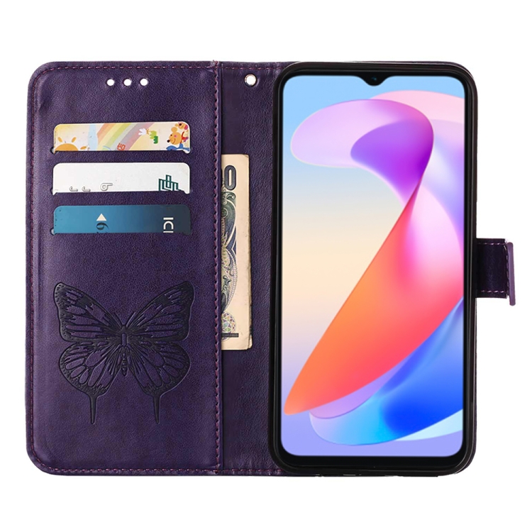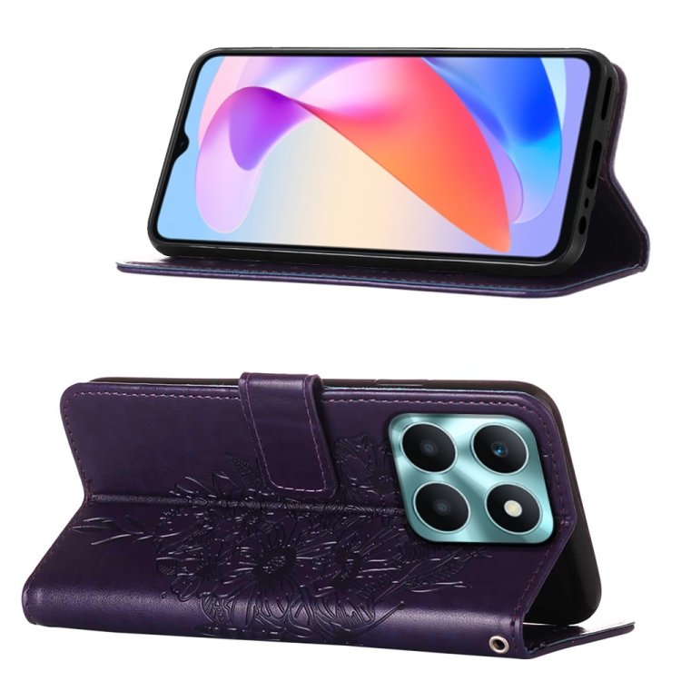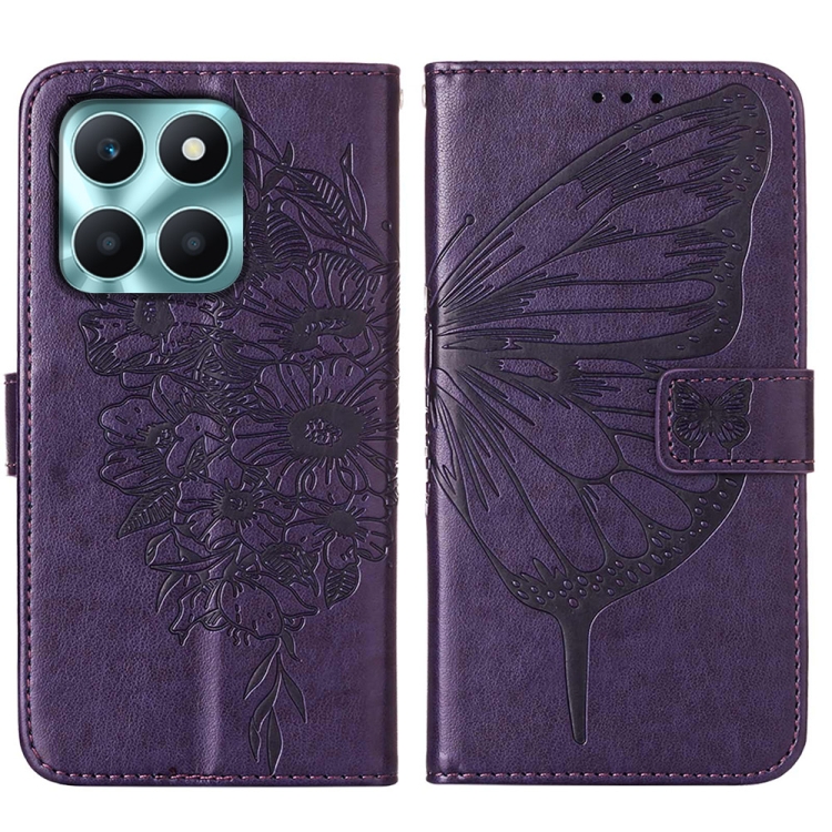 Funda para Teléfono Honor X6A de Cuero con Mariposa en Relieve (Púrpura Oscuro)