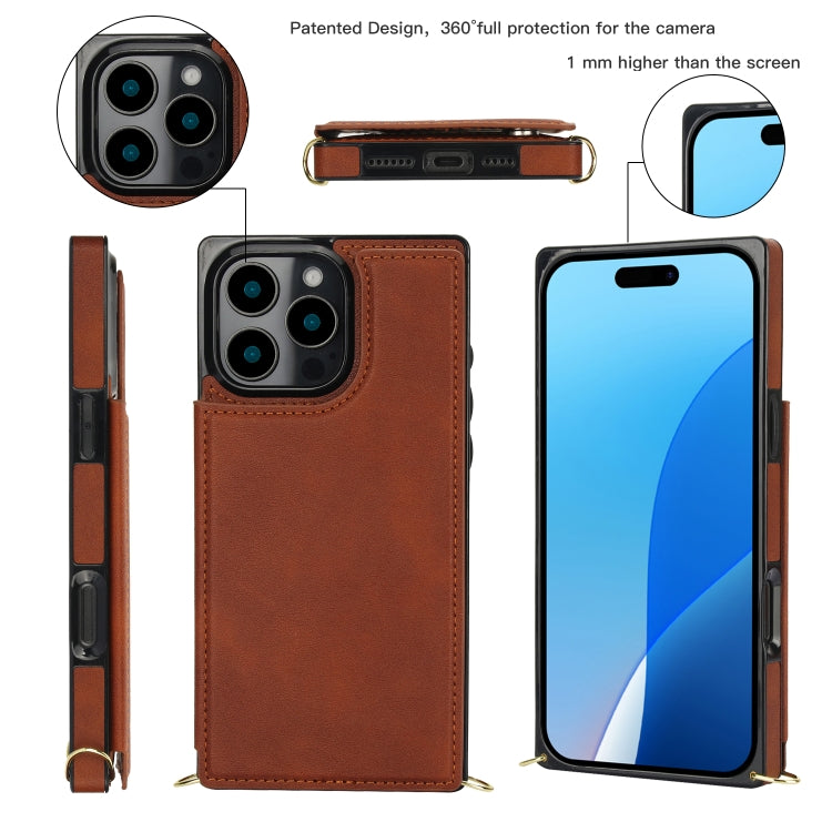 Funda para Teléfono Tipo Billetera iPhone 16 Pro con Tapa Doble Hebilla Cruzado (Marrón)