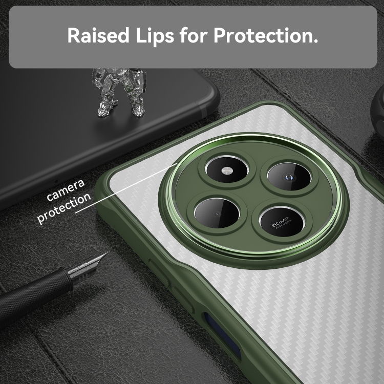 Funda para Teléfono Translúcida con Textura de Fibra de Carbono para Xiaomi Poco C75 (Verde)
