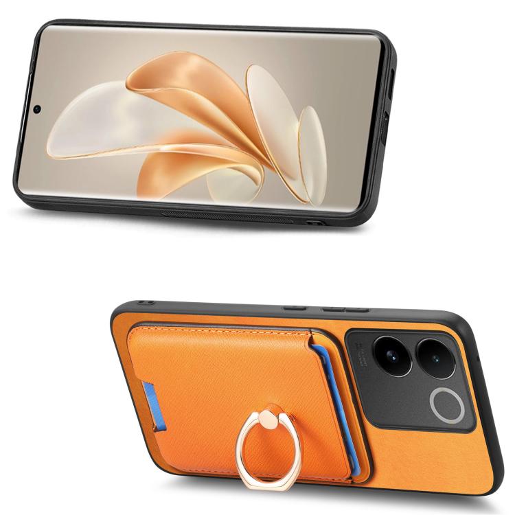 Funda para Vivo Iqoo Neo8/8 Pro con Anillo de Cuero Retro Cruzado y Ranuras para Tarjetas, con Inserción Vertical, Magsafe (Amarilla)