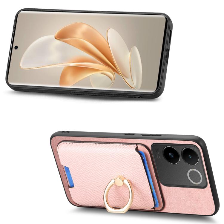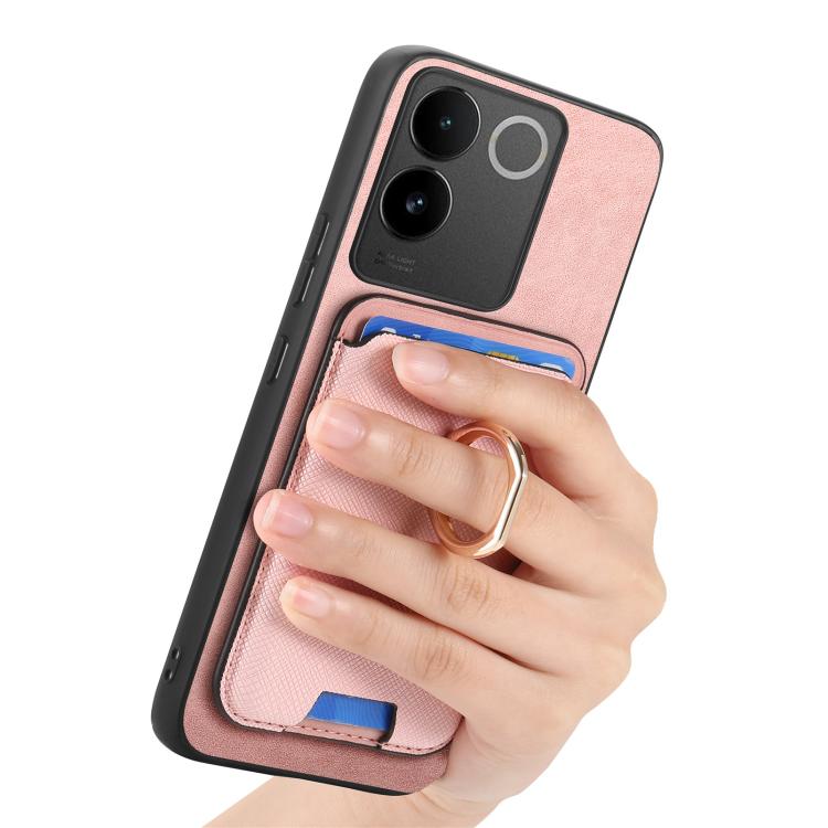 Funda para Vivo Iqoo Neo9/9 Pro 5G con Anillo de Cuero Retro Cruzado, Ranuras para Tarjetas y Ranuras para Tarjetas (Rosa)