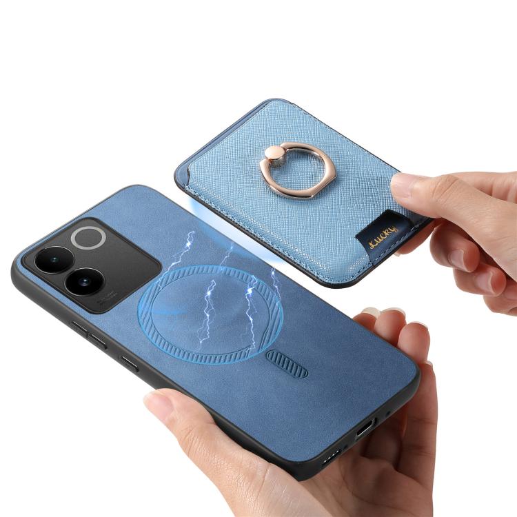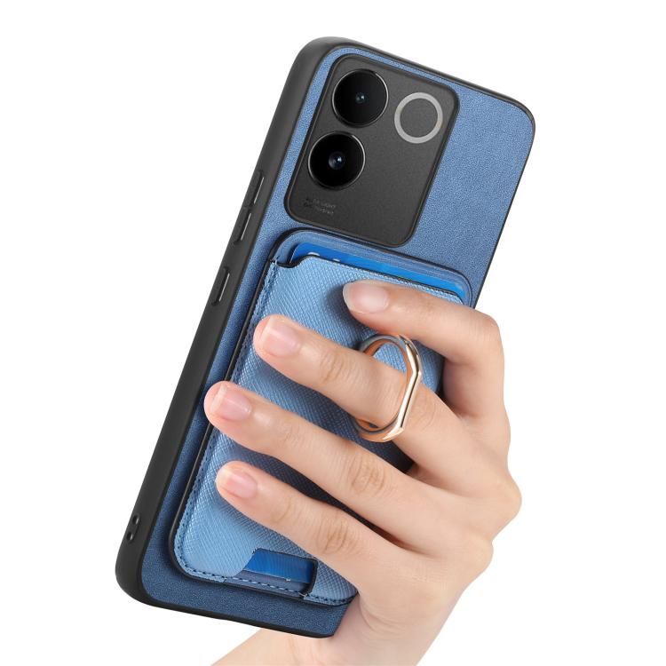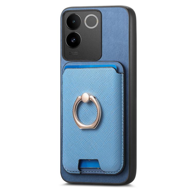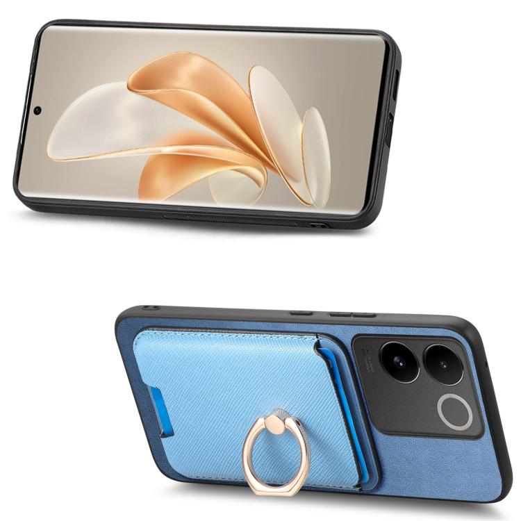 Funda para Vivo S18/S18 Pro 5G con Ranuras para Tarjetas y Anillo de Cuero con Diseño Retro Cruzado (Azul)