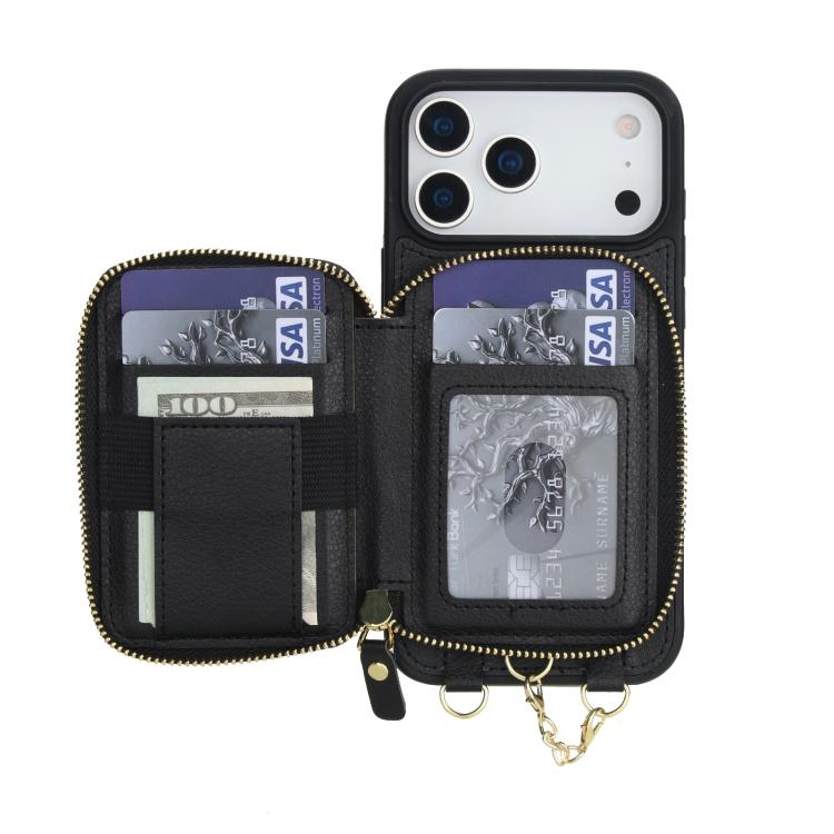 Funda tipo cartera bandolera con cremallera 2 en 1 AwQuer para iPhone 17 Pro (negra)