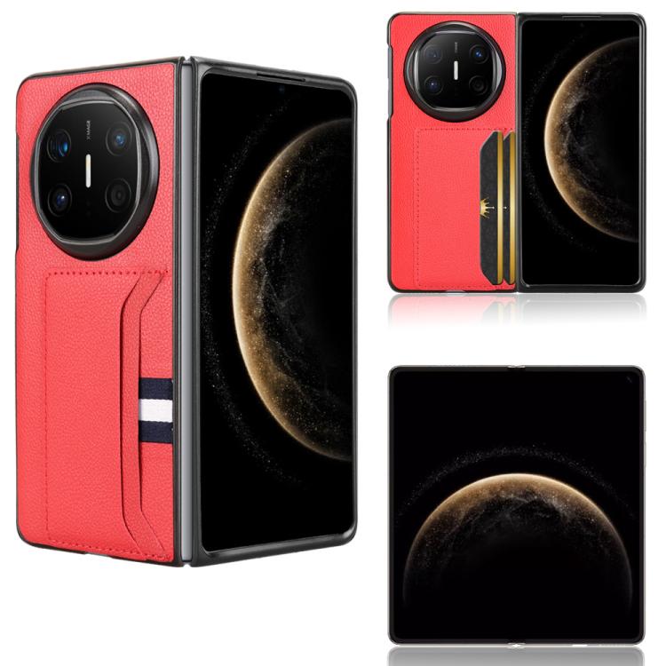 Funda Trasera Huawei Mate X6 con Ranuras para Tarjetas y Textura de Lichi (Roja)