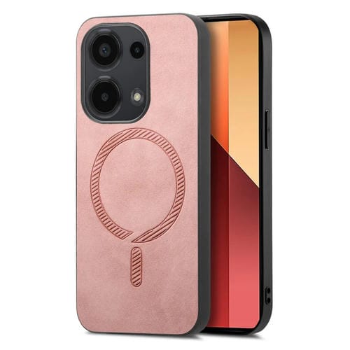 Funda Trasera de Pu Magsafe Retro de Color Sólido para Xiaomi Redmi Turbo 3 5G (Rosa)